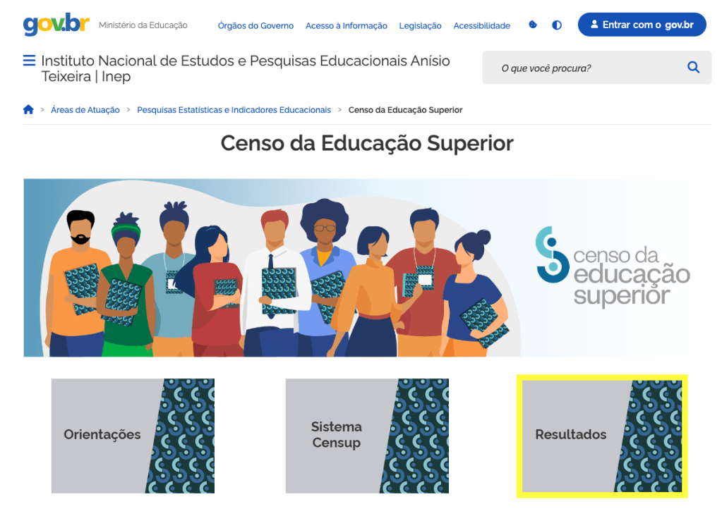 Acesse o site do governo brasileiro no Ministério da Educação e clique em “Resultados” no canto inferior direito da tela. O site pode ser acessado através deste link.